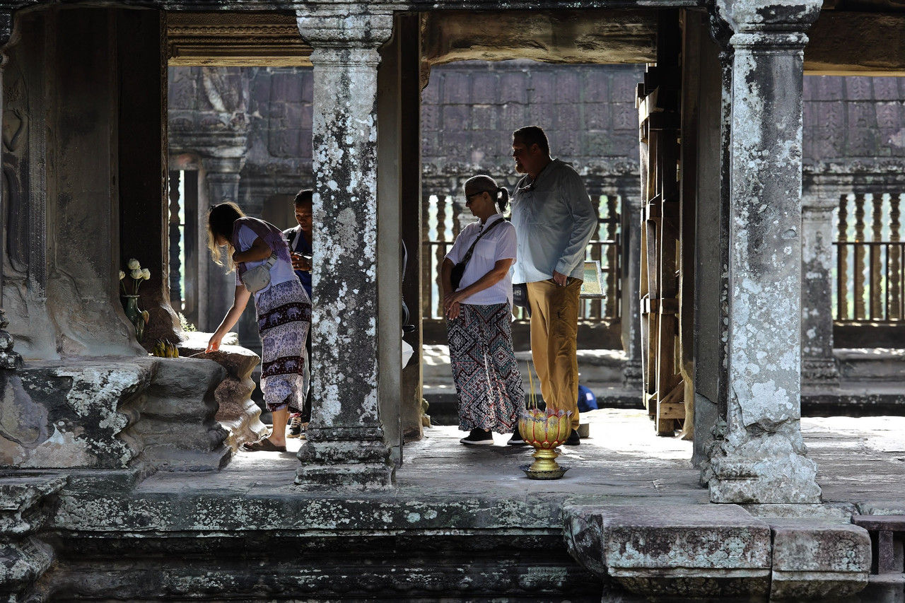 Incontrare occidentali che accendono incensi e fanno offerte in denaro nei tempi buddisti o indù situati nel complesso di Angkor Wat è un classico, in questo caso ho colto questi due momenti.