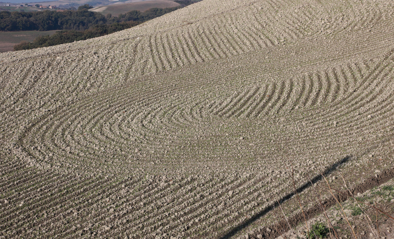 Una lavorazione "artistica" dei campi nelle Crete senesi.
