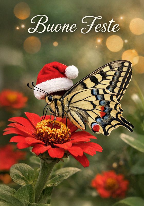 Bellissimi insetto e fiori. Tanti carissimi auguri per un bel Natale.