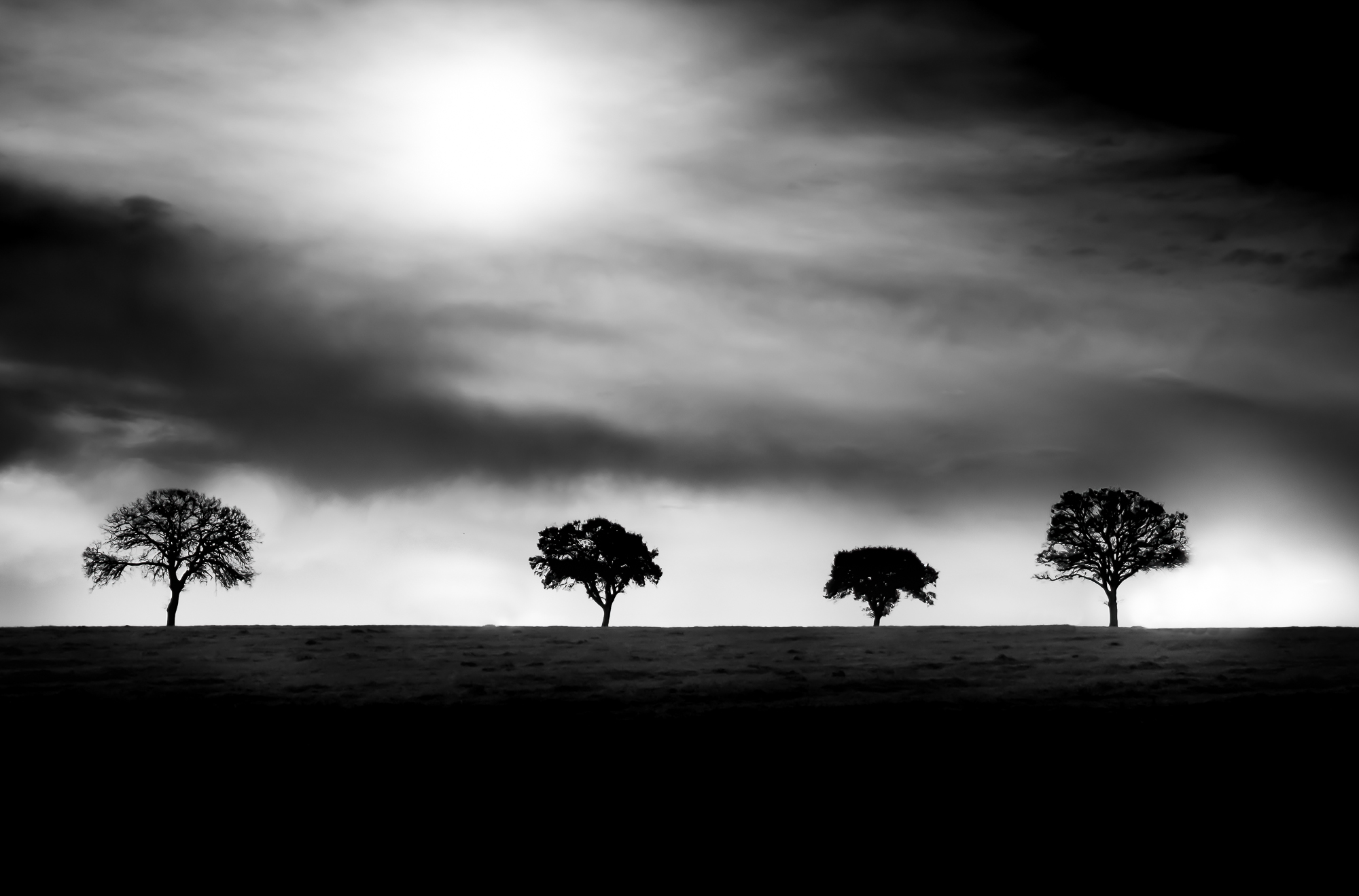 The aligned and dark trees are on the dividing line between the light and shadow areas. a shot with a graphic and minimal character that I like