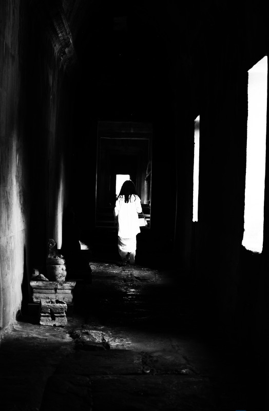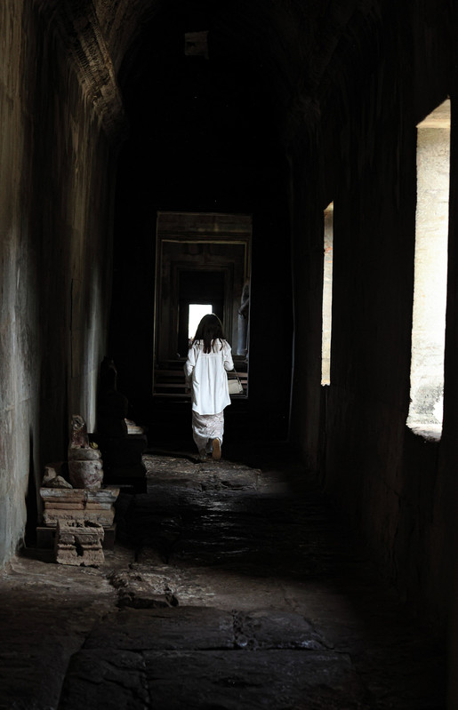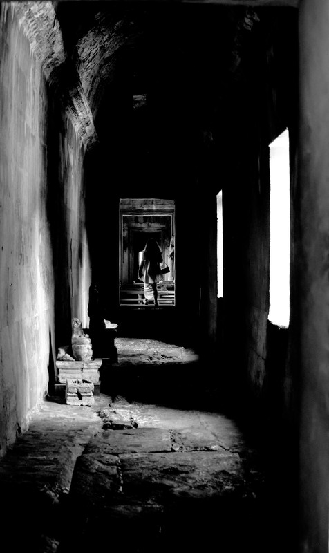 L'atmosfera composta dalla luce che filtra attraverso le aperture delle gallerie del tempio di Angkor Wat hanno un fascino particolare, tra il sogno e le presenze che si incontrano con fortuna e pazienza.