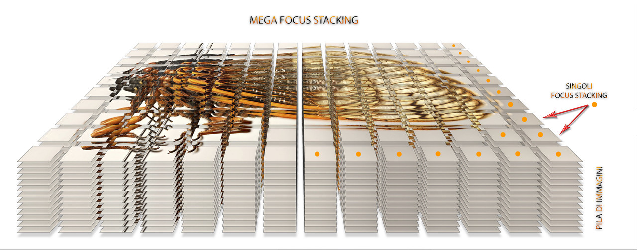 Fulvio, faccio una mappatura dell'insetto con la tecnica del focus stacking, ottengo così tanti tasselli che poi vado ad unire come fosse un puzzle. ogni tassello corriponde ad una parte del corpo ed è ottenuto con diverse decine se non centinaia di foto. ogni tassello corrisponde alla grandezza del sensore della macchina fotografica quindi il piano finale sarà un nuovo file sufficentemente grande per contenere tutti i tasselli, se converti le misure che allego da px a cm vedrai quanto grande è l'immagine.