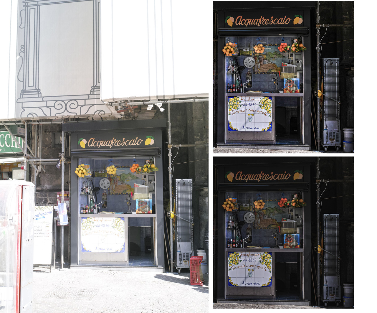 Grazie del passaggio Alfredo, per la composizione ho preferito mantenere l'impostazione originale, rettangolare con lato lungo verticale. Di conseguenza ho preferito accorciare la pavimentazione che a parer mio ruba troppa scena ed ho optato per l'aggiunta alla parte superiore, tutto qua Per i risultati simili credo dipenda in parte dalle ampie zone omogenee, con gradazioni più diffuse si interviene su porzioni ridotte e i risultati sono frastagliati. Dopo la procedura standard sono intervenuto solo sul gruppo per schiarire le ombre troppo chiuse. Devo anche specificare che il mio risultato finale è sballato: ho trattato la post con le impostazioni calibrate specifiche per la stampa... |