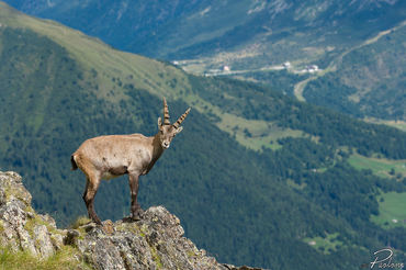 Stambecco con il passo del Tonale sullo sfondo