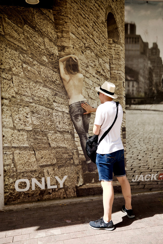 Ecco lo scatto originale con il protagonista che tocca il cartellone Credo che siano Jeans Only Bravissimo Roberto, hai risolto cosa faceva il protagonista vicinissimi alla soluzione mi sembra che vi erano anche Fabio e Loris Grazie a tutti per la condivisione alla Ironia. Un buon fine settimana a tutti Elio |