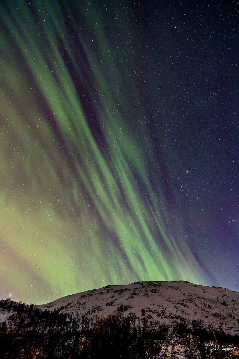 Durante il mio viaggio in Lapponia questa era la parola d'allarme dove ognuno lasciava quello che stava facendo (quasi sempre veniva interrotta una bella dormita...)per correre nel buio a cercare un'inquadratura ottimale. Tante notti con gli occhi rivolti al cielo perchè bastava crederci e il verde prima o poi arrivava. Dopo un'esperienza così straordinaria gli effetti collaterali continuano a manifestarsi: proprio ieri mi è parso di vederla nel cielo italiano....solo un'allucinazione purtroppo. #aurora #night #stars #green #mountain #aurora boreale #neve #notte #montagna