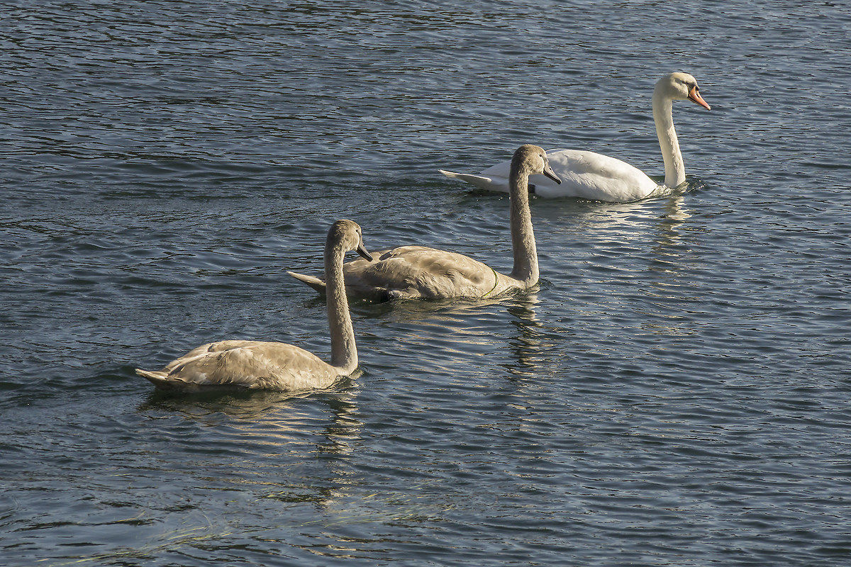 vicino a quel grosso albero. Come al solito, quando faccio quel percorso, tengo in borsa pronta per un'estrazione rapida l'A6000 (ormai vecchiotta ma fa ancora dignitosamente il suo sporco lavoro e ha un buon AF) con la combo zoom + teleconveritore descritta qui nella nota 8: www.juzaphoto.com/topic2.php?l=it&t=2496626 settata su f/11, 1/1000 e AF-C impostato sul punto centrale; nel caso che trovi cigni, o svassi, o germani o folghe che fanno qualcosa di interessante. Mi ero fermato a paparazzare questi tre cigni che evidentemente si sono accorti che li fotografavo (e sicuramente sapevano che li avrei pubblicati su Juzaphoto) e quindi si sono disposti in formazione: