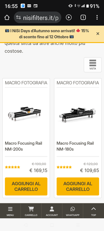Maybe consider the 180s (released later) which costs less and is shorter and lighter. In any case, when you use a micrometric slide, you never take advantage of all those millimeters in advance. :) Valuta magari la 180s (uscita in seguito) che costa meno ed è più corta e leggera. Tanto quando si usa una slitta micrometrica non si sfruttano mai tutti quei millimetri in avanzamento. :) |