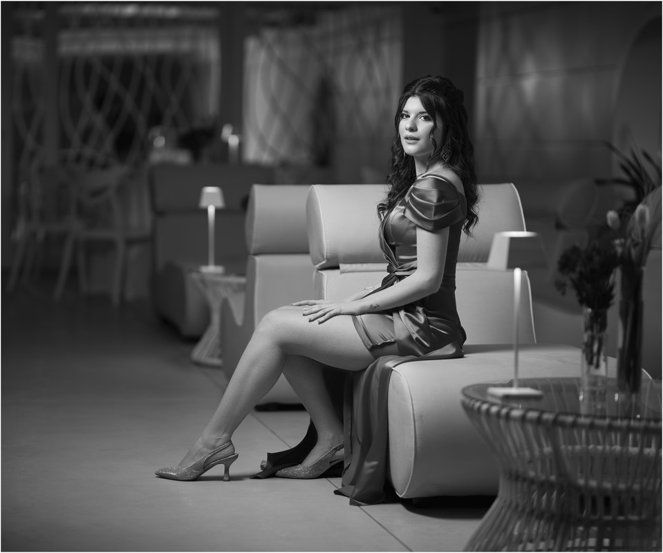 I don't like the grayish tone of the whole photo and I find the background a little too dark and slightly too contrasty. I also find the forehead a little too bright, in my opinion the brightness should be reduced using a brush in that area. Otherwise good Non apprezzo il tono grigiastro di tutta la foto e trovo lo sfondo un po' troppo scurito e modella leggermente troppo contrastata. Inoltre trovo la fronte un po' troppo luminosa,secondo me andava ridotta la luminosità usando un pennello in quella zona. Per il resto buona |