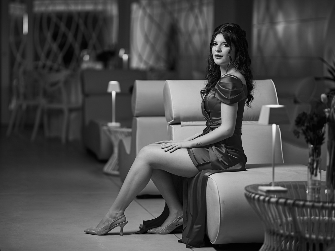 Sviluppo su C1 Ho lavorato su vari livelli A livello base ho solo aggiustato il bilanciamento del bianco Ho isolato il soggetto aprendo leggermente le ombre e abbassando le luci Ho lavorato su un altro livello con curve e luminosità per dare contrasto più contrasto allo sfondo Per la pelle ho corretto con lo strumento cerotto le imperfezioni più evidenti e su un ulteriore livello ho agito sulla chiarezza escludendo occhi e labbra Su un ulteriore livello ho dato nitidezza a occhi, labbra, capelli e vestito, ho aperto leggermente le ombre ai capelli (e per sbaglio anche al vestito)