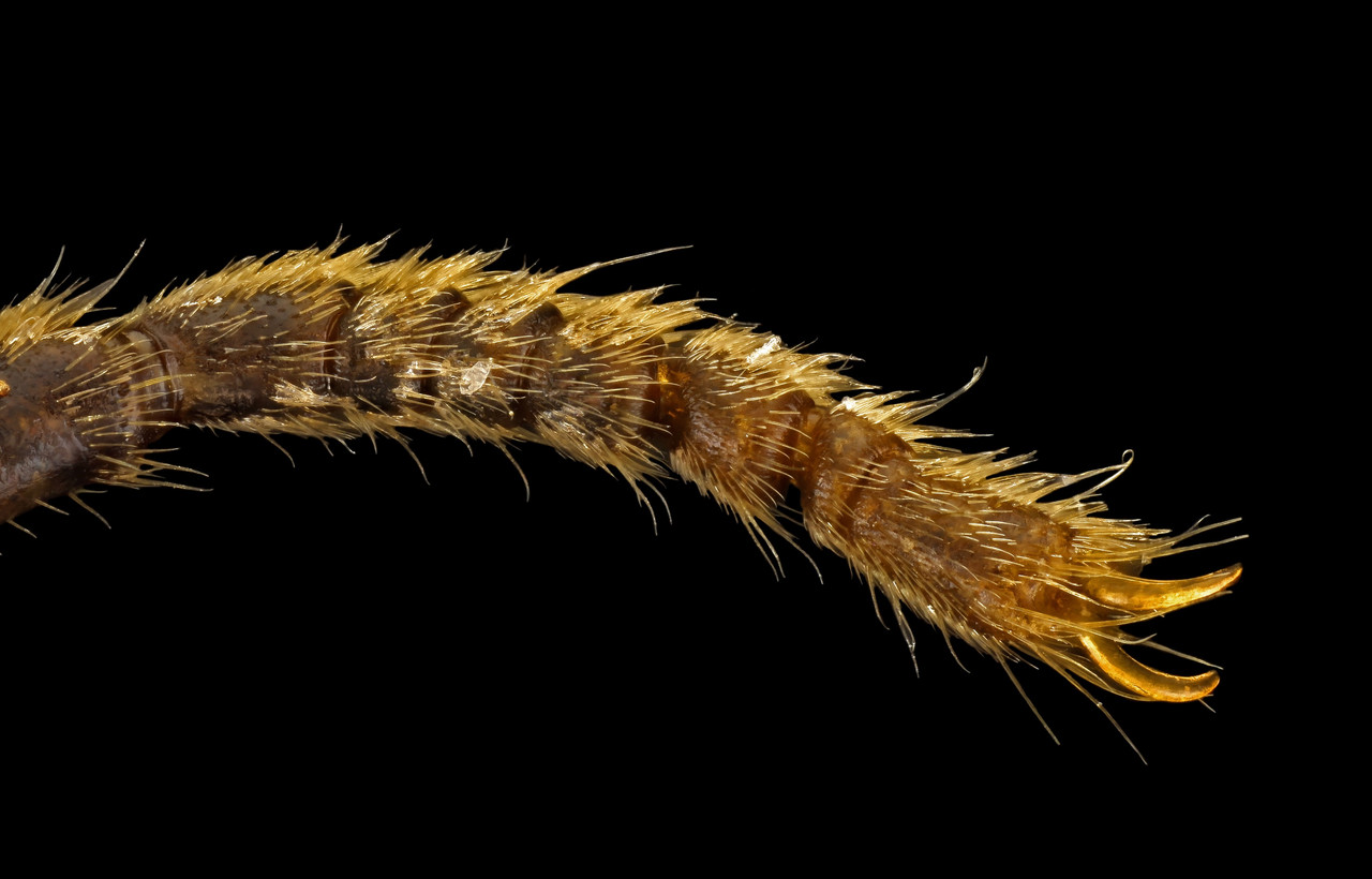 Gli Opilioni Questi aracnidi sono noti per le loro zampe eccezionalmente lunghe, rispetto alle dimensioni del corpo, anche se ci sono specie con gambe corte. La differenza tra gli opilionidi e i ragni è che negli opilionidi le due sezioni principali del corpo (il cefalotorace e l'opistosoma) sono sostanzialmente unite in una struttura a forma ovale. Inoltre non dispongono di ghiandole della seta o velenifere. Per quanto siano molto simili per aspetto e caratteristiche, gli opilioni non sono ragni (un altro ordine, Araneae). La posizione nell'albero filogenetico è ancora oggetto di studio: i loro parenti più stretti potrebbero essere gli acari (Acarina) o i Novogenuata (scorpioni, pseudoscorpioni e Solifugae) Pachylus chilensis Classe Arachnidae Ordine Opiliones Famiglia Gonyleptidae Genere Pachylus mm 12 tot scatti 7409 dim file 44.844 x 39.580 px 4,96 GB Mitutoyo x5 Canon R5 + dett al 100%