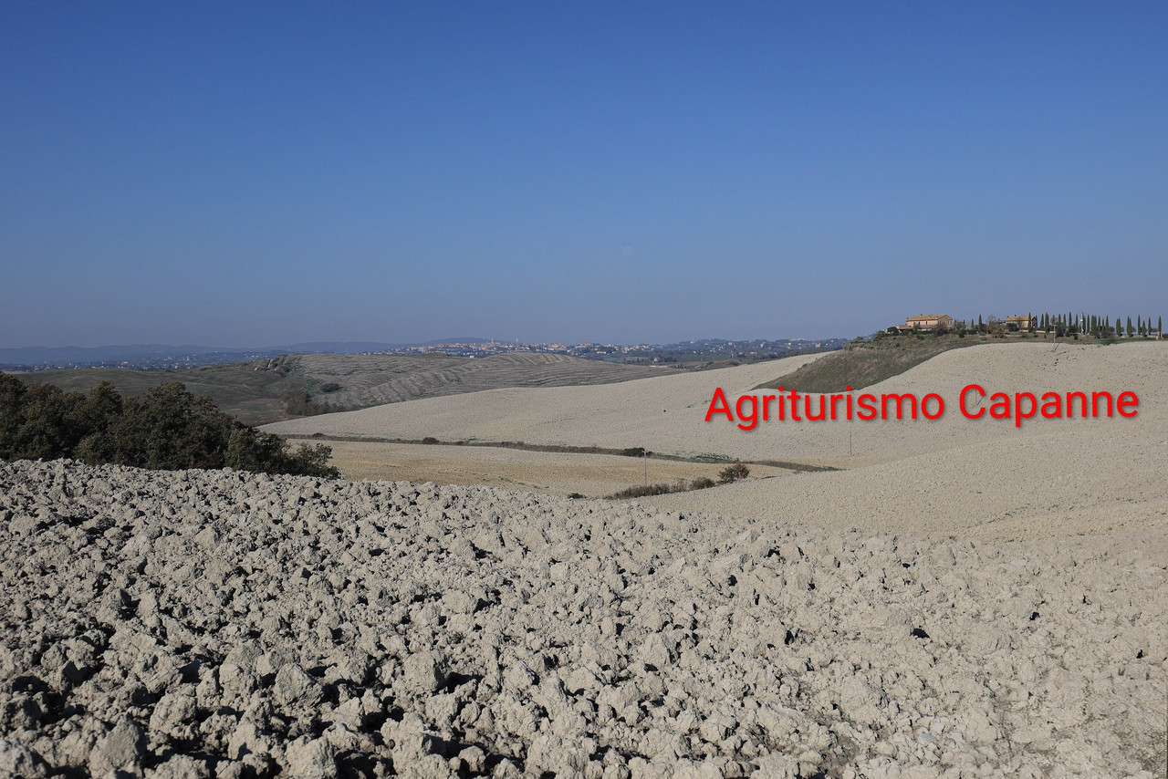 In località Strada di Medane si apre uno scenario unico nelle Crete Senesi, la Terra di Siena, con la skyline della città sullo sfondo che si unisce ai piani aratri del terreno in un susseguirsi di dolci andulazioni.