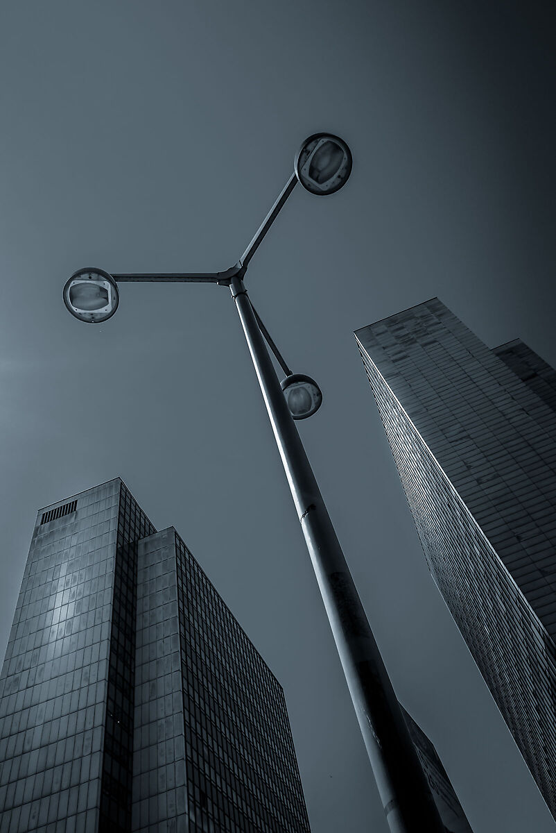 Mi associo all'ormai cancellato user Paolo, bella composizione, armoniosa, unita ad un bel viraggio! Chissà come sarebbe, andando nella direzione del minimal puro, con una clonazione del cartello in basso attaccato al lampione e anche della struttura in cima al grattacielo di sinistra? Un abbraccio Riccardo |