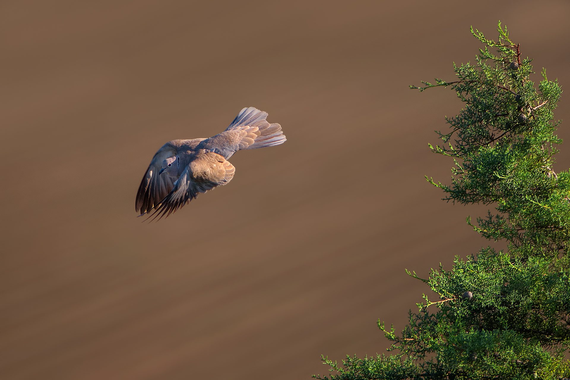 Non capisco se si tratta di un panning, a vedere lo sfondo, oppure sei riuscito a congelare perfettamente lo stacco della tortora dal collare