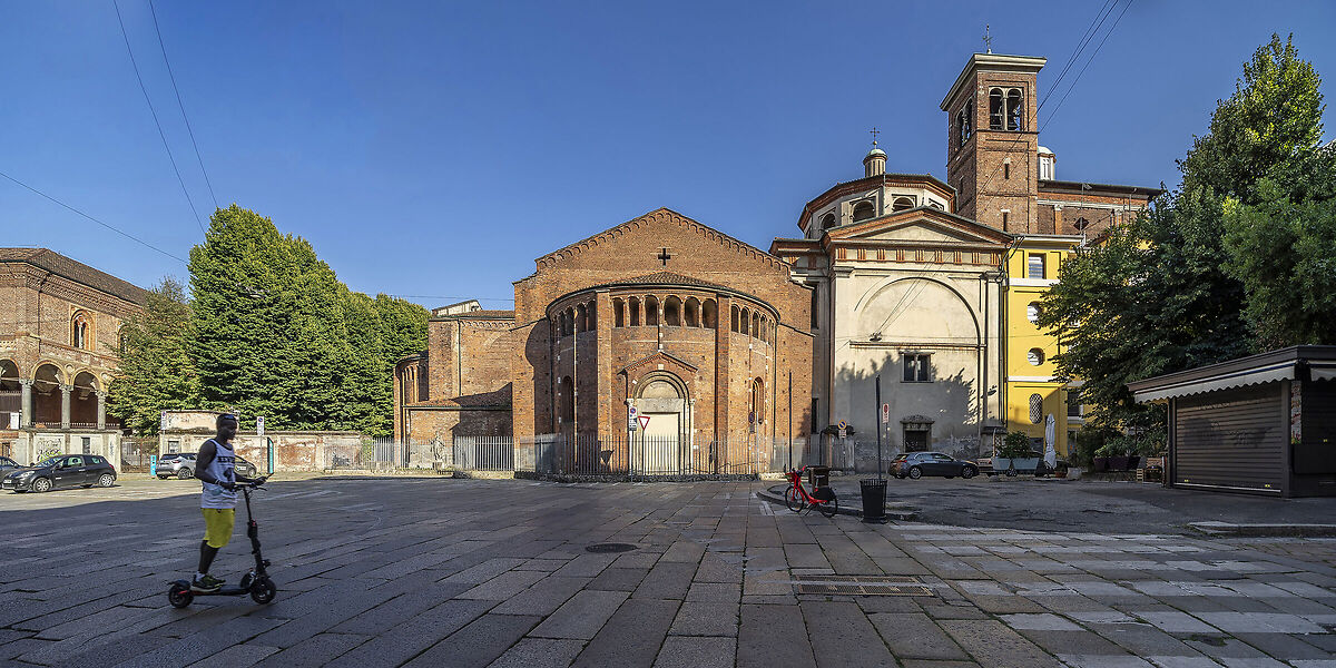 Basilica di San Nazaro in Brolo. Lunedì 9 agosto 2021, 17:59. Unione di due foto con la funzione Photomerge di Photoshop e l'opzione "Propettiva". Tramite il software DxO ViewPoint e il comando Modifica>Altera di Photoshop, ho ridotto l'effetto della deformazione marginale nella zone laterali. Nel commento sottostante vi è un'immagine data dall'unione delle medesime due foto, sempre tramite Photomerge con però l'opzione "Clindrico".
