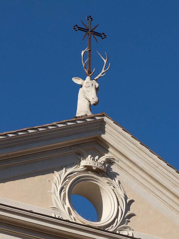 Narra la leggenda che la chiesa sorgerebbe infatti sulla casa di Placido, un comandante dell'esercito romano che, durante una battuta di caccia, si sarebbe imbattuto in un cervo che portava fra le corna l'immagine di Cristo. Convertitosi al cristianesimo, dopo essersi battezzato cambiando il suo nome in Eustachio il futuro santo fu orribilmente martirizzato (dentro un toro di bronzo infuocato) con tutta la famiglia sotto l'imperatore Adriano: circa due secoli, Costantino avrebbe trasformato la casa in luogo di culto, poi più volte radicalmente restaurato nei secoli a seguire...