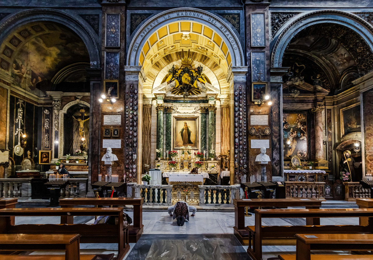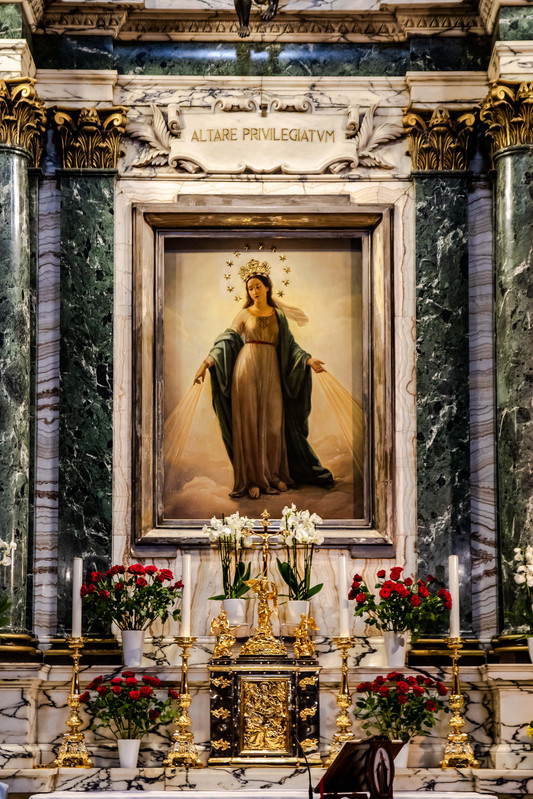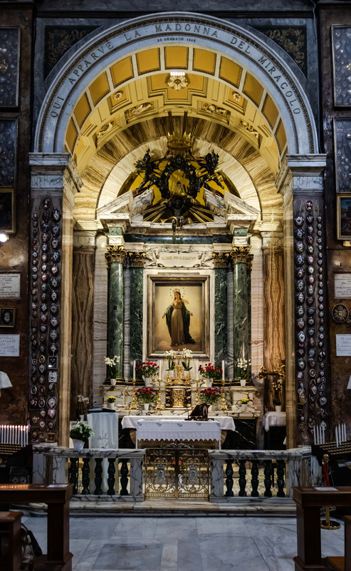 ...La storia della "Madonna del Miracolo" è legata all'apparizione della Vergine Maria ad Alfonso Ratisbonne, un ebreo ateo, nella chiesa di Sant'Andrea delle Fratte a Roma il 20 gennaio 1842. Ratisbonne, che aveva accettato di indossare la medaglia miracolosa per scherno, fu testimone dell'apparizione che portò alla sua immediata conversione al cattolicesimo. Questo evento rese la chiesa un santuario mariano, spesso chiamata la "Lourdes romana", e contribuì a diffondere ulteriormente la devozione alla Medaglia Miracolosa, che era stata richiesta da Santa Caterina Labouré a Parigi nel 1830. L'apparizione a Roma L'evento: Il 20 gennaio 1842, Alphonse Ratisbonne entrò nella chiesa di Sant'Andrea delle Fratte indossando la medaglia miracolosa per scherno. La visione: Vide la Vergine Maria apparire in una cappella, così come era raffigurata sulla medaglia, e fu invitato a inginocchiarsi. La conversione: L'esperienza segnò la sua profonda conversione al cattolicesimo; si rialzò immediatamente da credente e chiese di essere battezzato. Riconoscimento: La conversione di Ratisbonne, successivamente diventato sacerdote missionario, fu riconosciuta dalla Chiesa cattolica, accrescendo la devozione verso la medaglia e il luogo dell'apparizione...