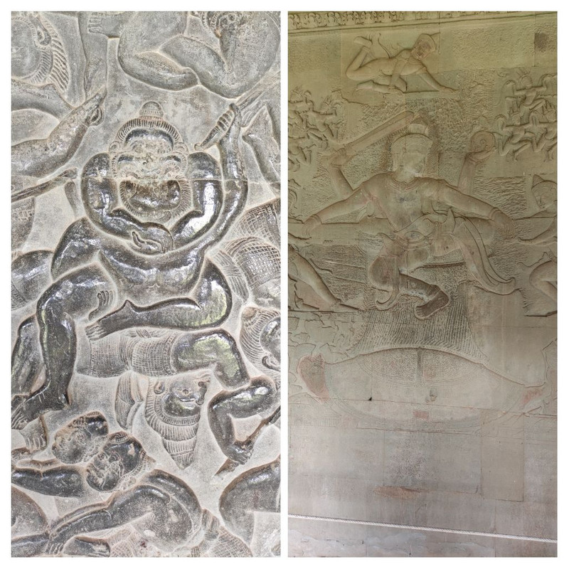 L'immagine a dx mostra un bassorilievo raffigurante il mito indù del "Samudra Manthana" (Agitazione dell'Oceano di Latte)