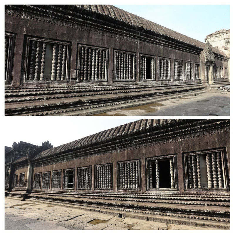 Le finestre mostrate nell'immagine presentano colonne scolpite, un elemento distintivo dell'architettura del tempio.