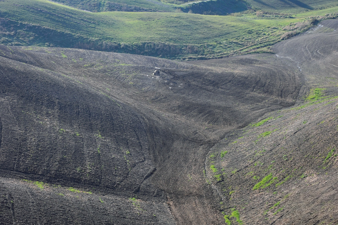 Il lavoro dei contadini nelle Crete Senesi segue il ritmo delle stagioni: preparazione del terreno in autunno/inverno, semina primaverile, raccolto in estate, ed il ciclo si ripete stagione dopo stagione. Con il loro andirivieni modellano il terreno e scoprono tesori nascosti, la sua conseguenza? Ricevere un assalto organizzato.
