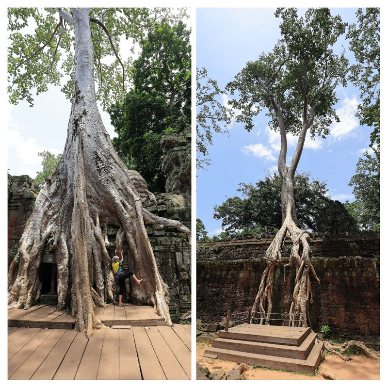Le rovine di Angkor sono notoriamente intrecciate con l'ambiente naturale, soprattutto a Ta Prohm, creando una fusione di inquietante bellezza tra architettura e giungla. La vegetazione ha avuto ragione di questo luogo di culto inglobandolo interamente nella giungla e soffocandolo con le radici al punto di strangolare intere parti del tempio, letteralmente alla mercé dei ficus strangolatori che si sono impossessati delle rovine, inglobando i muri nel loro tronco.