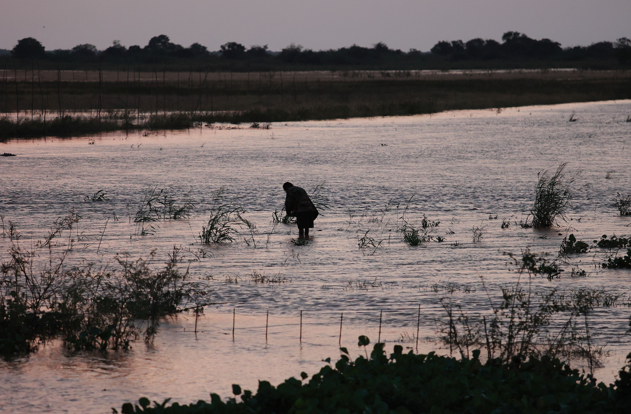 Mentre i pescatori, nelle basse acque si apprestano a raccogliere gli ultimi frutti della giornata, tra le reti o in punta di barca, c'è chi riempie il serbatoio per il ritorno a casa. Mentre il battello naviga dolcemente sul fiume nel percorso di ritorno, nel frattempo il tramonto ci regala la sua grande atmosfera con colori di nuove sfumature che vanno verso tonalità rosee.