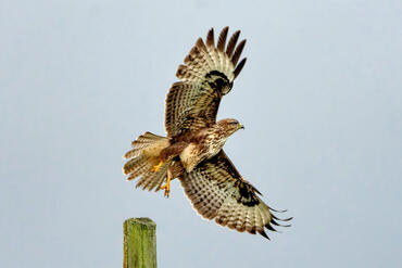 Buzzard with mouse in its claws