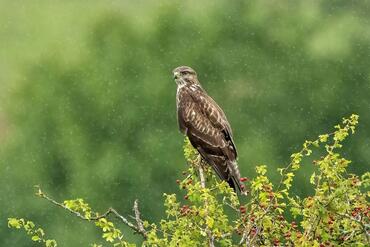 Flying through the foliage Buzzard (Buteo buteo)