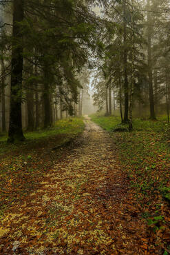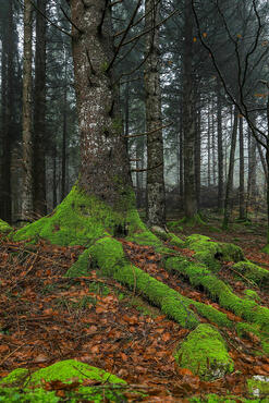 Beech trees in the fog