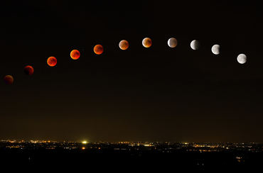 Various phases of the lunar eclipse on the panorama of Ceglie m