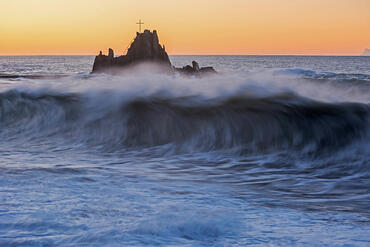 Enys Dodnan Arch at sunset