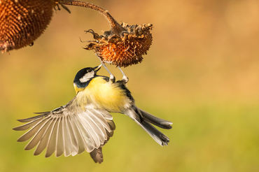 Female verdone on sunflower