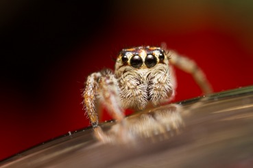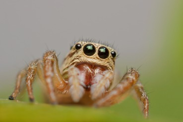 Jumping spider with green eyes