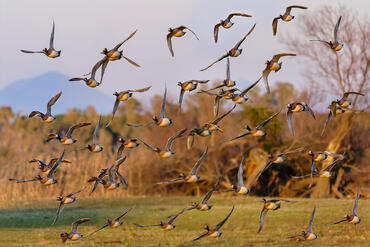 Wigeons at sunset