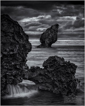 Gloomy and beautiful sunset at Reynisdrangar