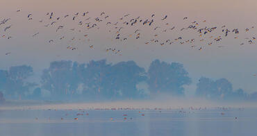 Wigeons at sunset