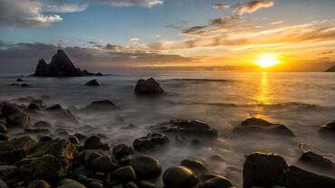 The sunset and the wave