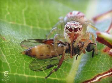 Synema globosum who prey a Heliophanus (Ver. 2)