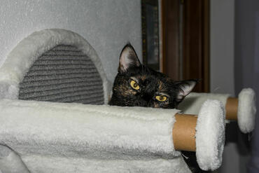 Curious kitten .eyes wide open waiting for the leap