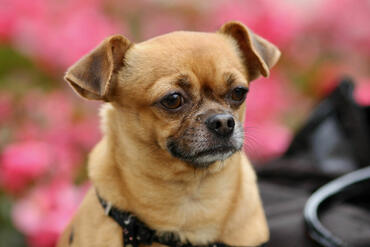 Il mio cane in posa . cucciolo pensieroso in ritratto