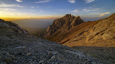 Pale di San Martino al tramonto da Bivacco Bontadini