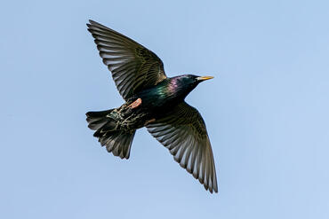 Storno che caccia insetti sulle pecore