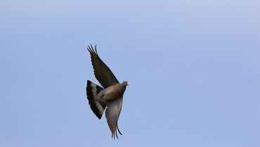 Primo piano colombaccio al volo