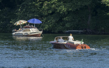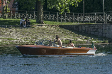 Riva Aquarama che incrocia un pedalò