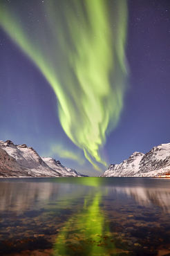 Aurora Boreale su fiordo Norvegese