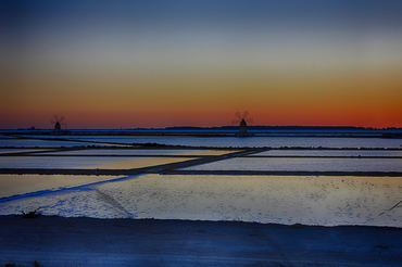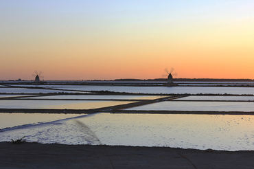 Tramonto su saline, Egadi e mulini