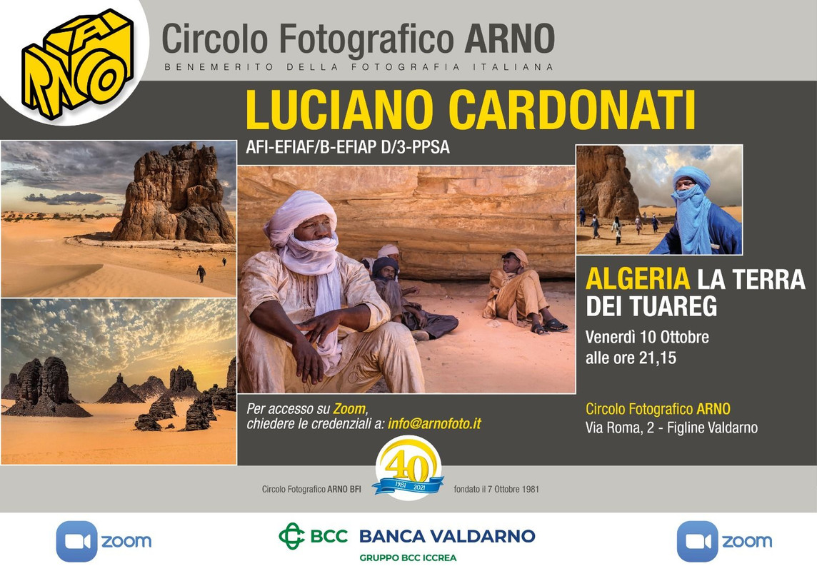 "Algeria la terra dei Tuareg" Sarà possibile seguire l'evento anche su piattaforma Zoom, per l'accesso chiedere le credenziali a: info@arnofoto.it