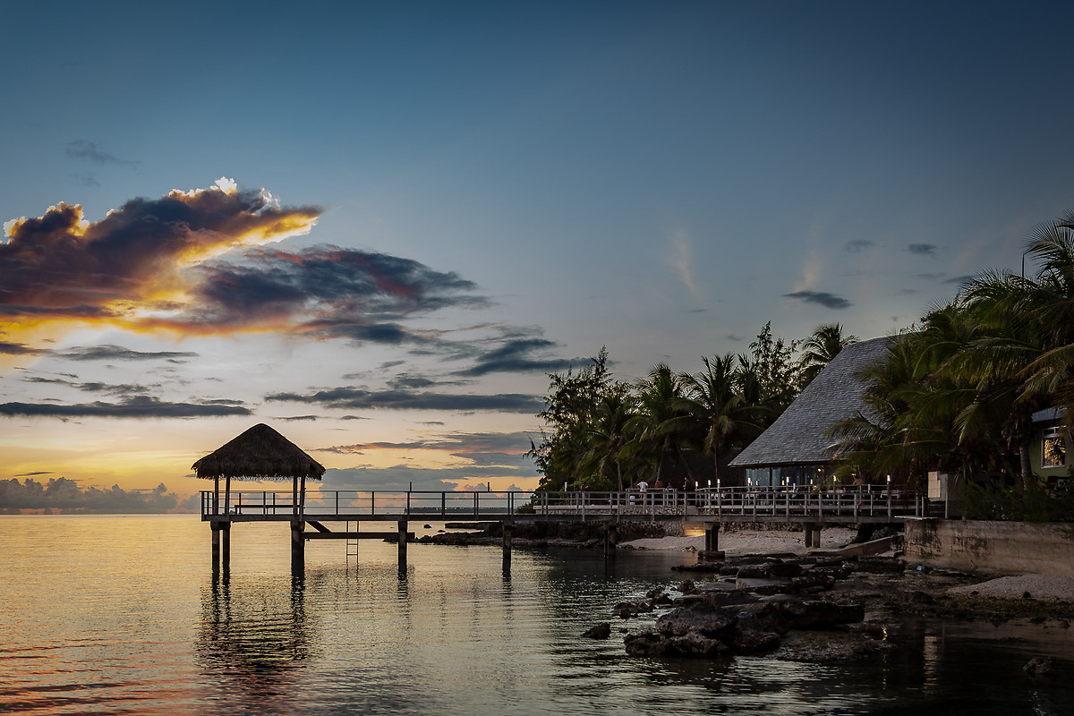 Rangiroa è uno spettacolo. Bungalow ben arredati con vista sulla laguna dell'atollo, personale cordiale e caloroso, acqua cristallina e piccole pinne di squalo che fanno capolino dalla superficie del mare. Sembra un sogno! L'arrivo sembra promettere bene e già non vedo l'ora di “bagnare” la mia Canon per immortalare tutto ciò che l'isola può offrirmi. Intanto, con i miei compagni, ci godiamo un bellissimo tramonto...