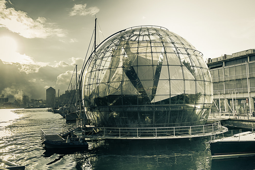 Costruita nel 2001, di forma sferica, ha un diametro di 20 m, un peso complessivo di 60 t ed una superficie espositiva di circa 200 m², è sospesa sul mare, a ponte Spinola, nelle immediate vicinanze dell'acquario.