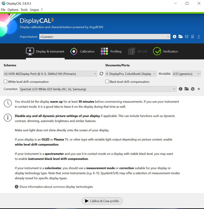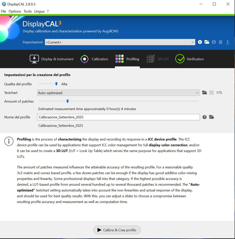Pocket 3: come posso proteggerla mentre filmo? in Fotocamere, Accessori e Fotoritocco il 23 Novembre 2025, 23:34 Ciao, vorrei andare con la mia Pocket 3 a filmare il festival Holi in India, che potrebbe con degli spruzzi di acqua colorata rovinare la camera. Dovrei quindi proteggerla mentre filmo. Quindi, oltre che mettere un filtro sull'obiettivo, che posso altro fare? Qualcuno ha un'idea come posso fare? Grazie. 10 commenti, 252 visite - Leggi/Rispondi DisplayCAL e i1Display Pro x calibrare il monitor. Un consiglio? in Fotocamere, Accessori e Fotoritocco il 20 Novembre 2025, 13:27 Ciao, ho i1Display Pro e vorrei iniziare a usare il software DisplayCAL per calibrare il mio monitor LG da 27". Dato che è la prima volta che lo uso, vorrei qualche consiglio su come configurare DisplayCAL. Ho bisogno di un suggerimento di configurazione da qualcuno che lo usa. Non cerco una calibrazione perfetta, solo una standard, semplice come punto di partenza. Poi farò qualche test. Grazie per i consigli. PS. P.S.: Allego gli screenshot di DisplayCAL.